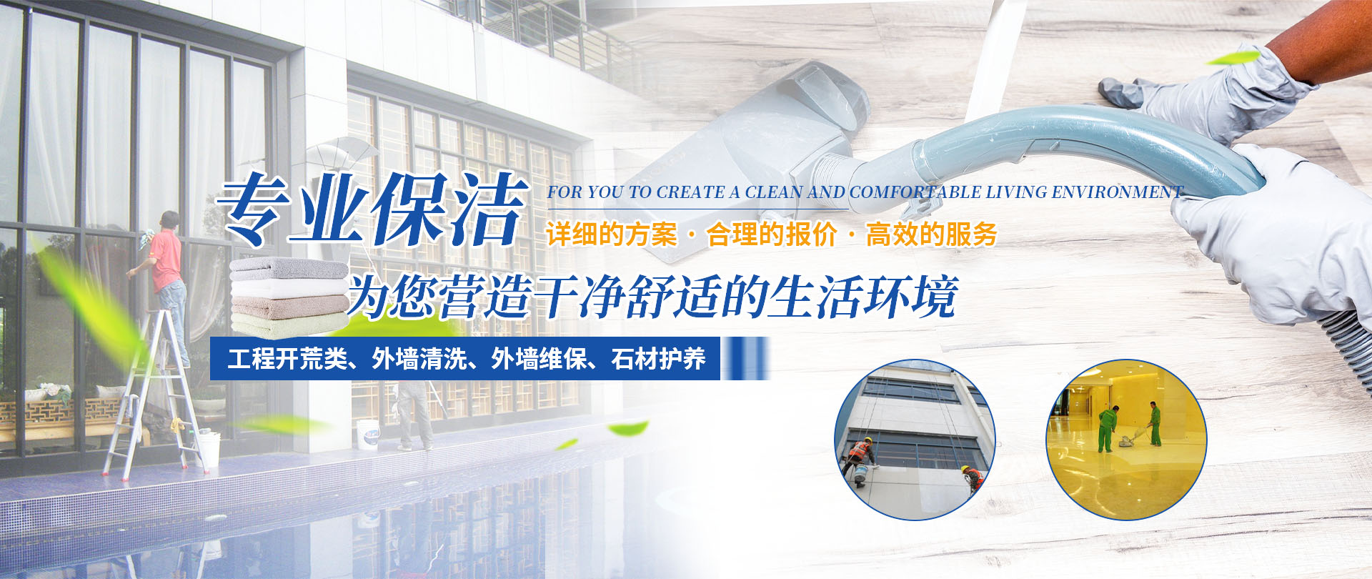 四川梓淇清潔服務(wù)有限公司,是一家從事物業(yè)管理,外墻清洗,外墻維保,綜合類(lèi)開(kāi)荒保潔企業(yè)公司。   專(zhuān)業(yè)從事物業(yè)管理、工程開(kāi)荒類(lèi)、外墻清洗、外墻維保、石材護(hù)養(yǎng)服務(wù)。公司有正規(guī)培訓(xùn)、擁有專(zhuān)業(yè)的保潔隊(duì)伍;齊全的清潔設(shè)備;規(guī)范的作業(yè)流程;主動(dòng)的服務(wù)意識(shí)。   秉承“環(huán)保、健康、科技、創(chuàng)新、專(zhuān)業(yè)”的服務(wù)理念,為您提供詳細(xì)的施工方案,合理的報(bào)價(jià),高效的服務(wù),全力為客戶(hù)創(chuàng)建一個(gè)綠色環(huán)保、清新的環(huán)境,我們的服務(wù)宗旨是:只要您一個(gè)電話,我們將為您營(yíng)造一個(gè)干凈舒適的生活環(huán)境。